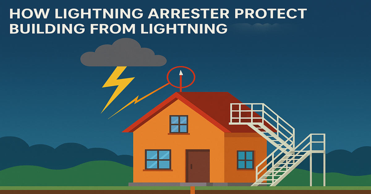 A lightning arrester protects buildings and equipment by safely directing lightning strikes to the ground.
